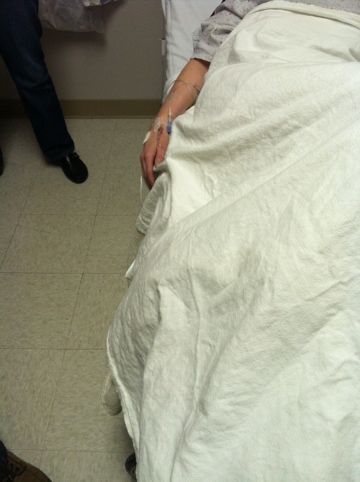 Oh, and did I mention the mishap of trying to move the IV and the nurses not being able to find a vein? This is what lead to going three hours without an IV. A nurse tries to stick it. Then a different nurse tries. Then they call someone. And that someone doesn’t show up for three hours.